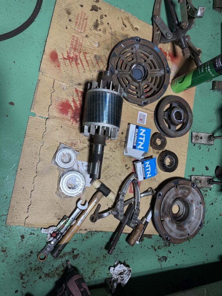 葉打機のデカいモーターベアリング交換重くて腰が抜けそう^^;